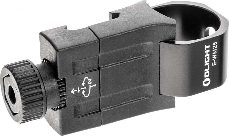 Швидкознімне кріплення для ліхтаря Olight E-WM25 – представник нового покоління аксесуарів для тактичних ліхтарів. Ця модель призначена для встановлення на планки Picatinny/Weaver, підходить для ліхтарів з діаметром корпусу до 1" (2.54 мм). Використання одночасно пластику з алюмінієм дозволило суттєво знизити вагу кріплення без втрати надійності.