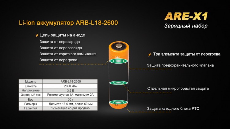 Набір: Fenix ARE-X1 + акумулятор Fenix 18650 2600 mAh