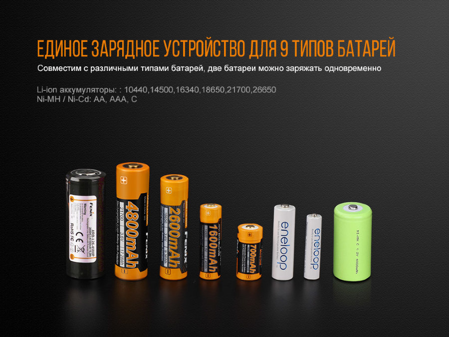 Типорозміри акумуляторів: 21700, 18650, AA, AAA, 14500, 26650, 16340, C