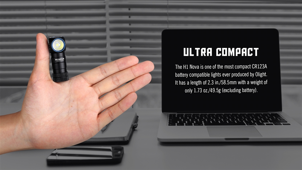 Olight H1 Nova – це потужний ультракомпактний ліхтар із максимальною яскравістю 500 люмен та довжиною променя 66 метрів. Крім використання як налобного ліхтаря, його можна використовувати як кишеньковий ліхтарик на кожен день, для цього лише потрібно витягти його з наголовного кріплення. У комплекті з ліхтарем іде кліпса для носіння на поясі, кишені або іншому спорядженні. У кришку ліхтаря вбудовано магніт, за допомогою якого можна закріпити ліхтар на металевій поверхні, наприклад, на корпусі автомобіля під час ремонту.
