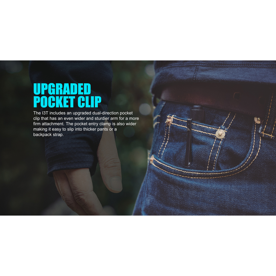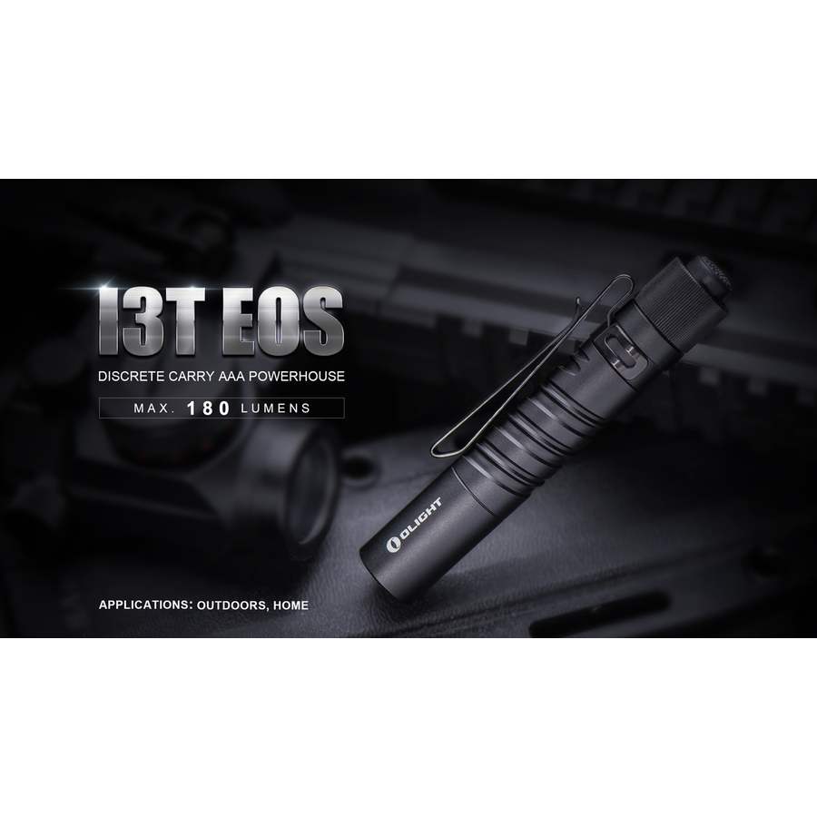 Ліхтар Olight I3T EOS - яскравий представник популярної лінійки EOS, що включає в себе компактні і брелочні ліхтарі. Наслідуючи традиції своєї серії, I3T має габарити схожі зі звичайною кульковою ручкою (89х15 мм), завдяки чому він практично непомітний в кишені брюк або сорочки. Компактний форм-фактор обумовлений використанням елемента живлення AAA або «мізинчика», як його часто називають в побуті.