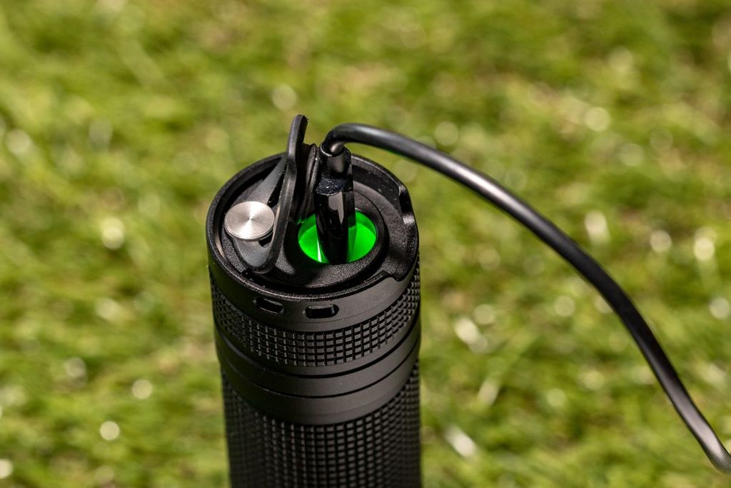 Заряджається ліхтар через USB порт. Його можна заряджати від комп'ютера чи ноутбука або від звичайної розетки 220В. У комплекті є кабель і адаптер. Корпус ліхтаря виготовлений з алюмінію, ліхтар витримує падіння з висоти до метра, водонепроникний за стандартом IPX-8 і може витримувати занурення у воду на глибину до 2 метрів протягом півгодини. На корпусі ліхтаря є спеціальна насічка, яка дозволяє надійно утримувати ліхтар у руках.