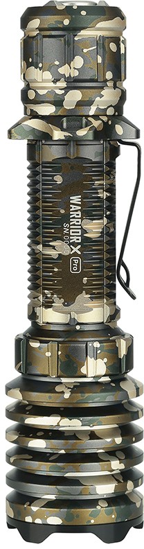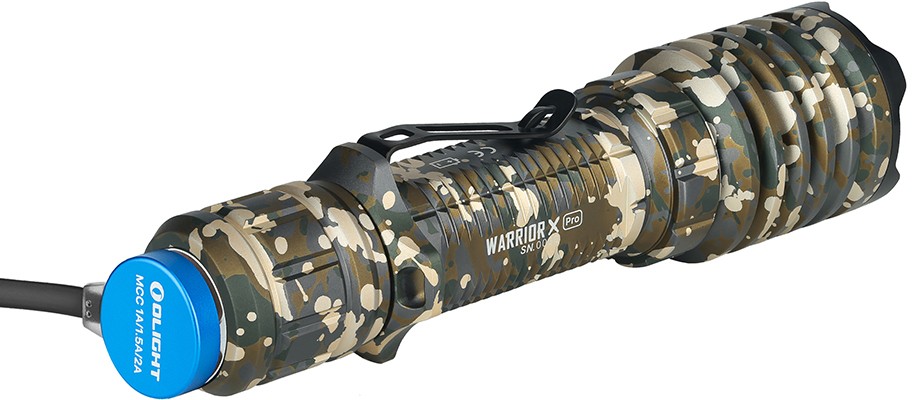 Новий тактичний ліхтар Olight Warrior X Pro – це результат глибокої модернізації попередника Warrior X. променя до 600 метрів. У моделі реалізовано систему сповіщення про низький рівень заряду шляхом вібрації. Працездатність пристрою забезпечується Li-Ion акумулятором формату 21700, більш потужного ніж 18650 попередника. Є аналогічна можливість підзарядки як і у ліхтарях серії S-Baton. Управління здійснюється за допомогою безшумної металевої торцевої кнопки. За потреби користувач може самостійно запрограмувати ліхтар на конкретний режим роботи. Головна відмінність Warrior X Pro від попередника полягає в новому типі акумулятора, збільшеній світлосилі та формі кнопки управління. Даний ліхтар легко витримує віддачу.