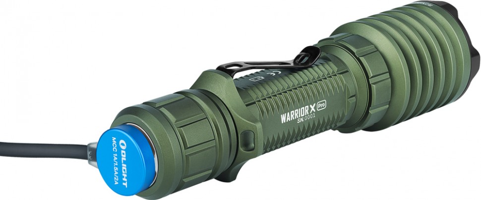 Новий тактичний ліхтар Olight Warrior X Pro – це результат глибокої модернізації попередника Warrior X. променя до 600 метрів. У моделі реалізовано систему сповіщення про низький рівень заряду шляхом вібрації. Працездатність пристрою забезпечується Li-Ion акумулятором формату 21700, більш потужного ніж 18650 попередника. Є аналогічна можливість підзарядки як і у ліхтарях серії S-Baton. Управління здійснюється за допомогою безшумної металевої торцевої кнопки. За потреби користувач може самостійно запрограмувати ліхтар на конкретний режим роботи. Головна відмінність Warrior X Pro від попередника полягає в новому типі акумулятора, збільшеній світлосилі та формі кнопки управління. Даний ліхтар легко витримує віддачу.