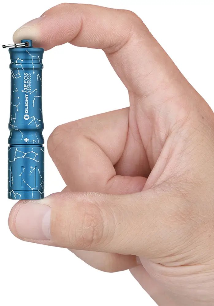 Olight I3E EOS – один із найкомпактніших ліхтарів у лінійці Olight. Завдяки своїм габаритам його можна використовувати як брелок на ключах. Ліхтар має приємний дизайн і поставляється в різних колірних варіаціях корпусу: чорний, червоний, синій, зелений, бузковий та срібний. Працює I3E EOS на світлодідіоді Philips LUXEON, срібна версія - має збільшену продуктивність в 120 lm і дальність світлового променя 48 метрів, решта - мають потужність 90 люмен і дальність світлового променя 44 метрів, що дуже непогано для настільки маленьких ліхтариків.