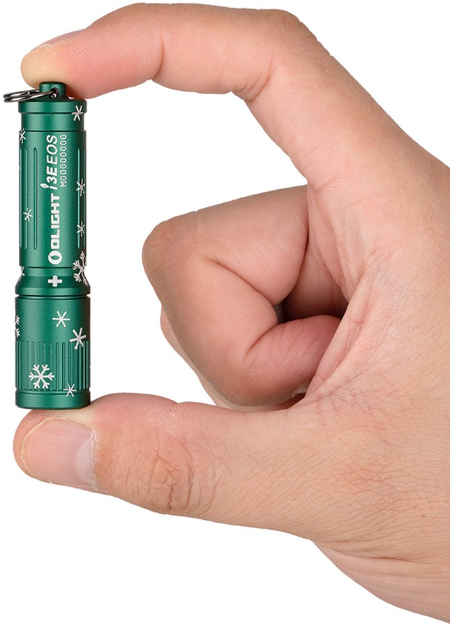 Olight I3E EOS – один із самих компактних ліхтарів в лінійці Olight, завдяки своїм габаритам його можна використовувати в якості брелока на ключі. Ліхтар має приємний дизайн і поставляється в різних колірних варіантах корпусу: чорний, червоний, синій, зелений, золотий і срібний. Працює I3E EOS на светодидиоде Philips LUXEON, срібна версія – володіє збільшеною продуктивністю 120 lm і дальністю світлового променя 48 метрів, решта - мають потужність 90 люмен і дальність світлового променя 44 метрів, що вельми непогано для настільки маленьких ліхтариків.