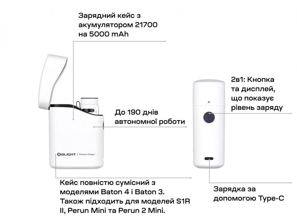 Особливістю моделі Baton 4 Premium є те, що він поставляється в комплекті з зарядним кейсом, що має акумулятор 21700 на 5000 мАг. Цифровий дисплей показує рівень заряду батареї і діє як кнопка, що дозволяє користувачеві керувати ліхтарем, не виймаючи його з кейсу. Кейс повністю сумісний з моделями Baton 4/Baton 3 і дозволяє зберігати та заряджати такі моделі ліхтарів, як: S1R II, Perun Mini і Perun 2 Mini.