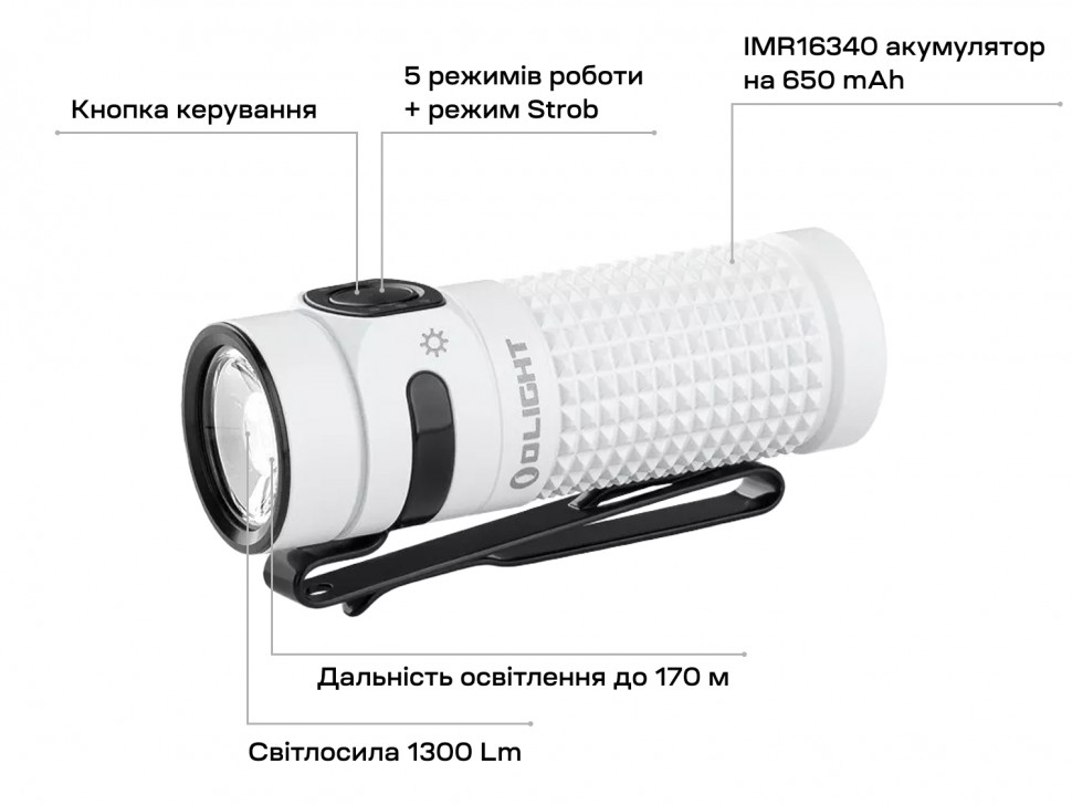 Ліхтар Olight Baton 4 Premium Edition White + сумка-органайзер у подарунок!
