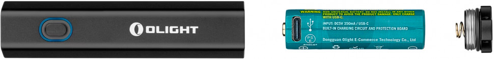Olight Diffuse живиться від літій-іонного акумулятора 14500 ємністю 920 мАг та оснащеного розємом USB-C і функцією зарядки. Ліхтар також сумісний з батарейками типу АА.