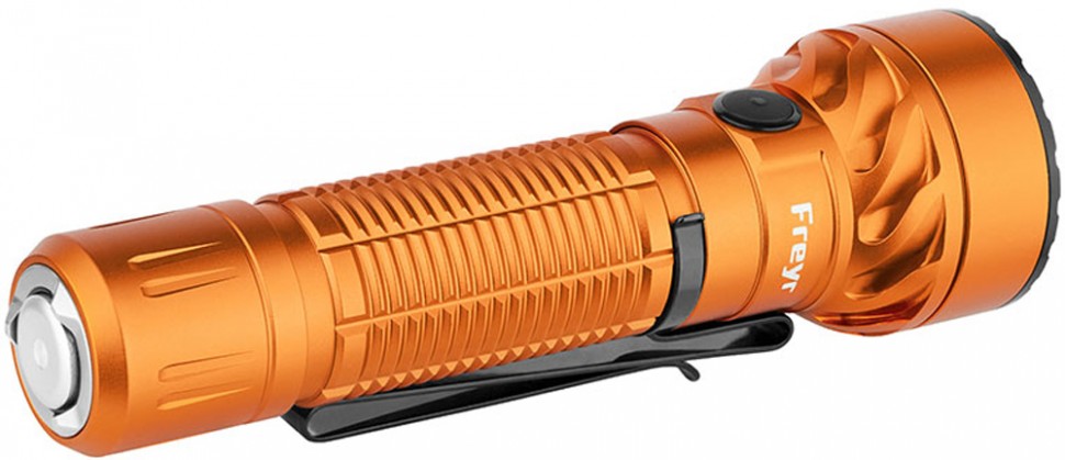 В якості живлення Olight Freyr використовує кастомізований акумулятор типу 21700 на 5000 mAh. Індикатор зарядженості ліхтаря знаходиться в боковій кнопці і сигналізує користувачу про рівень заряду ліхтаря.