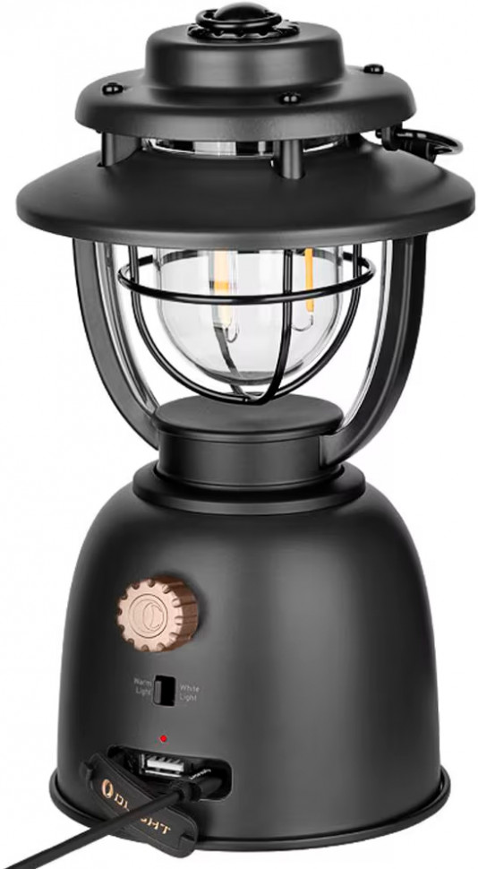 Вінтажний корпус виготовлений з ударостійкого металу, а абажур - з легкого та міцного пластику та має ступінь водонепроникності IPX5, що забезпечує захист від вологи та легкого дощу. Зручна ручка дозволяє легко переносити пристрій в руці або повісити його, наприклад, на гілку або в наметі. Режим роботи змінюється за допомогою пересувної кнопки на передній панелі корпусу. Зручна поворотна ручка регулює світловіддачу.