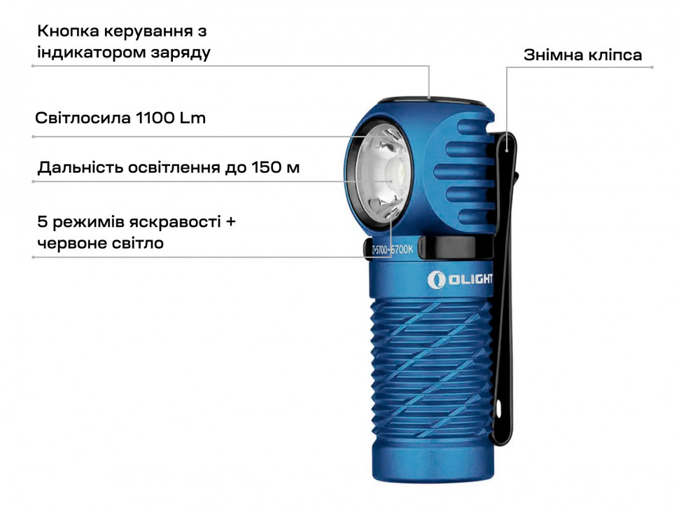 | Комплектація | Ліхтар, Інструкція, Зарядний пристрій, Кріплення, Кліпса |