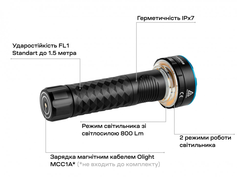 Prowess - це новий пошуково-кемпінговий ліхтар від бренду Olight. Його оцінять військовослужбовці, а також він стане в пригоді в походах, як повсякденних, так і на складних трекінгових маршрутах. Завдяки потужним світлодіодам High-Performance LED, забезпечується світловий потік до 5000 люмен на відстань до 245 метрів. З іншого боку розташовані високоефективні світлодіоди теплого білого кольору, що випромінюють до 800 люменів теплого світла, яке розсіюється на 360 градусів, для використання ліхтаря в якості лампи.