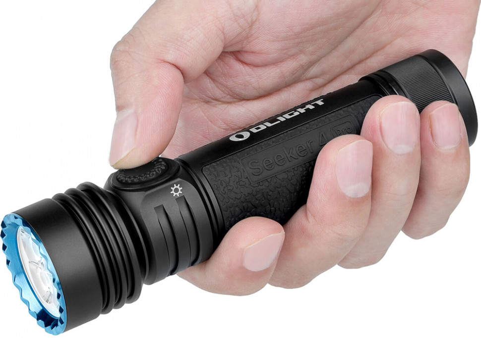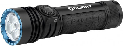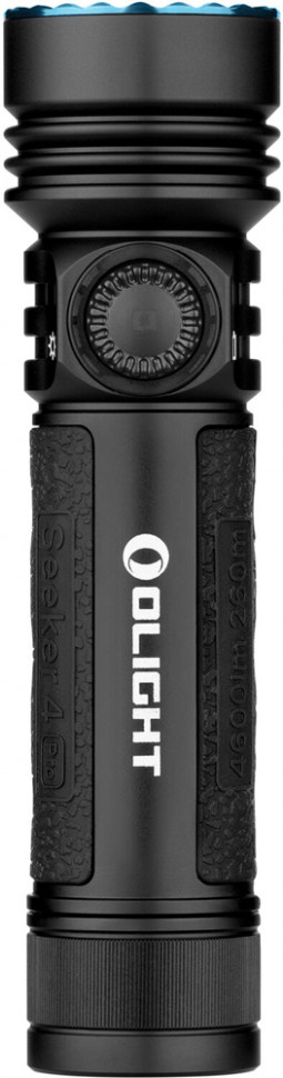 Ліхтар Olight Seeker 4 Pro - нова еволюційна гілка в модельному ряду Seeker. Завдяки 4 високоефективними світлодіодами, нова модель отримала максимальну яскравість 4600 lm з дальністю світіння до 260 метрів. Інтенсивність світлового потоку становить 16 895 кандел. Ліхтар має 5 режимів яскравості, які плавно регулюються зручною кнопкою-кільцем. Модель Seeker 4 Pro перезаряджається, а безперервну роботу до 15 днів забезпечує Li-ion акумулятор. Корпус виготовлений з алюмінієвого сплаву. Зверху розміщена силіконова вставка для більш комфортного і міцного утримання. У комплекті йде чохол з можливістю зарядки прямо в ньому і кріплення для ременя.