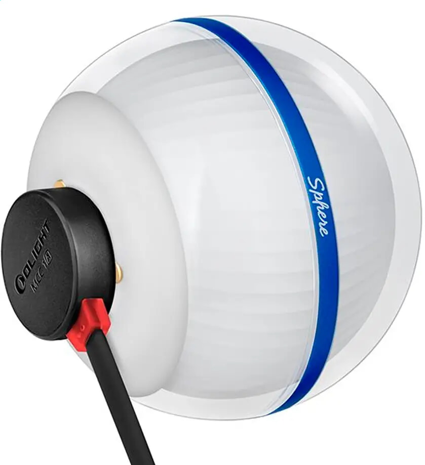 Olight Sphere – це новітній кемпінговий ліхтар від відомого бренду Olight. Він є вдосконаленою версією серії Olight Obulb, поєднуючи компактність, легкість і високі технічні характеристики. Ліхтар оснащений потужним світлодіодом, що забезпечує світловий потік до 75 люменів на відстань до 25 метрів у всі напрямки (360°).